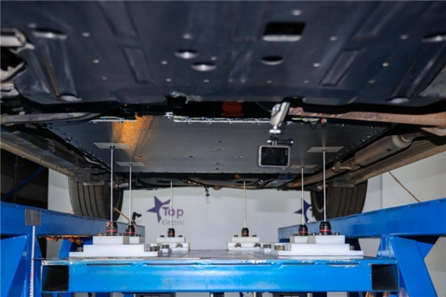 本次挑战模拟车辆碰到路面隆起物或机敏拦阻物(如钢筋、断裂金属件等)同期刺穿电板和油箱的极点工况,4根钢针刺穿能源电板,2根钢针刺穿油箱,形成电板短路与油箱同期败露,让电板和油箱同期受到多刺破损,增多热扩散风险,提高肃穆难度。